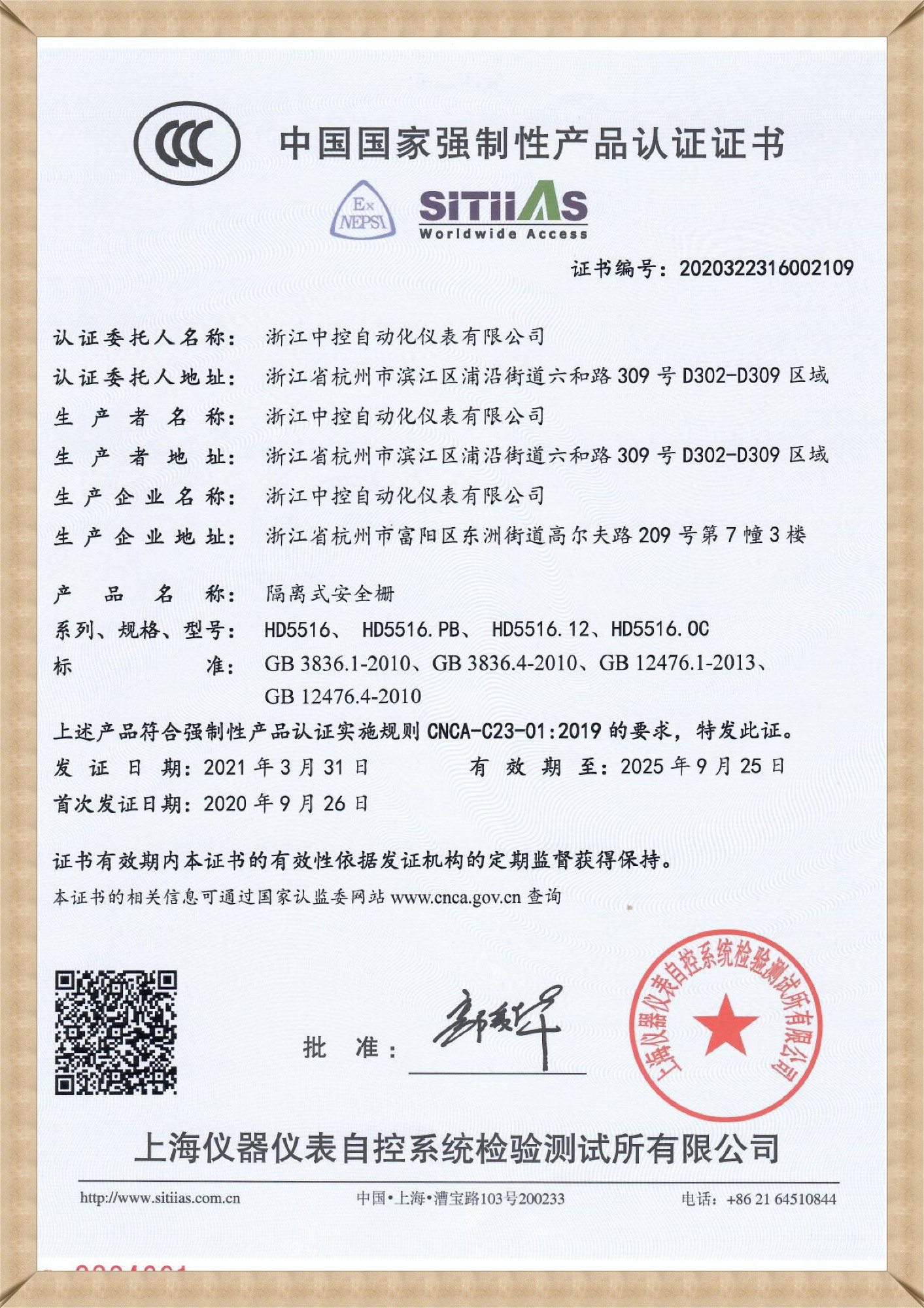 CCC認證證書